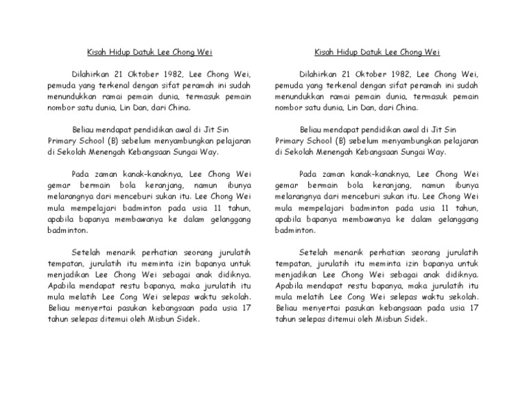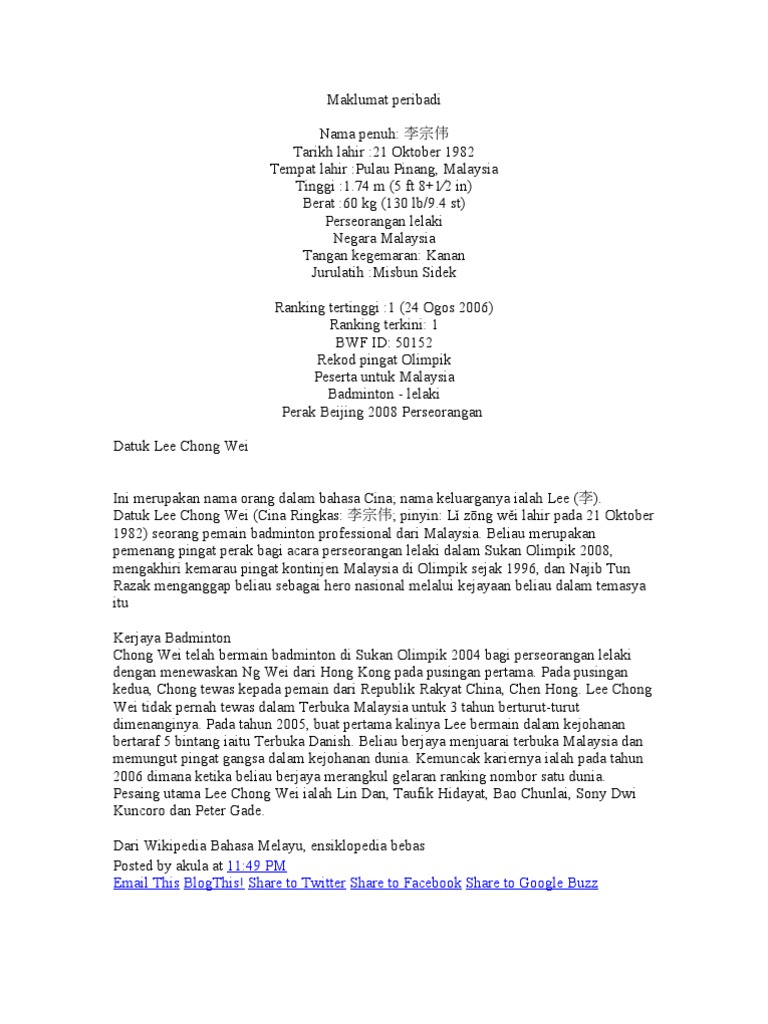 Maklumat Peribadi Lee Chong Wei Pdf