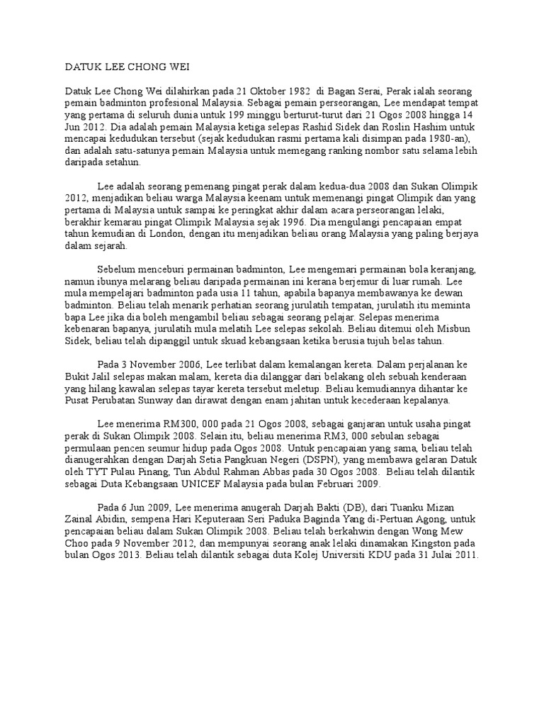Doc Biodata Datuk Lee Chong Wei Zaimah Anuar Academia Edu