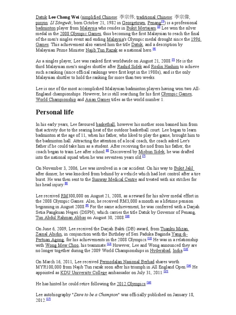 Lee Chong Wei Pdf Malaysia Sports